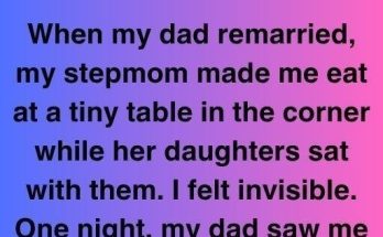 When my dad remarried, his new wife made me sit at a tiny table in the corner during meals, while she and her daughters sat at the main table. I …