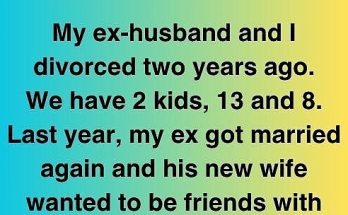 My ex-husband and I divorced two years ago. We have two kids, 13 and 8. Last year, my ex got married again and his new wife wanted to be friends …