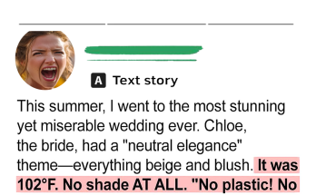 Bride Banned Water Bottles at Wedding During 102°F Heat for ‘Aesthetic’ – Groom’s Mom Had Other Plans